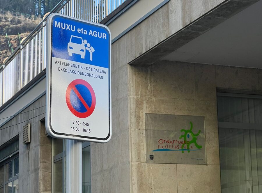Haurreskolako gurasoen eskariz, 'Muxu eta agur' izeneko bi aparkaleku jarri ditu Ondarroako Udalak ikastetxearen aurrean.