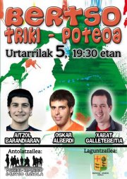 Zapatuan, errege bezperako bertso-triki poteoa egingo da Markina-Xemeinen. Xabat Galletebeitia lekeitiarra, Oskar Alberdi zestoarra eta Aitzol Barandiaran ataundarra ariko dira tabernaz-taberna. Trikitixak lagunduko du giroa alaitzen.