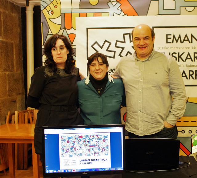 Ezker eskuin, Kristina Boan, Edurne Brouard eta Koldo Tellitu, Bilboko aurkezpenean