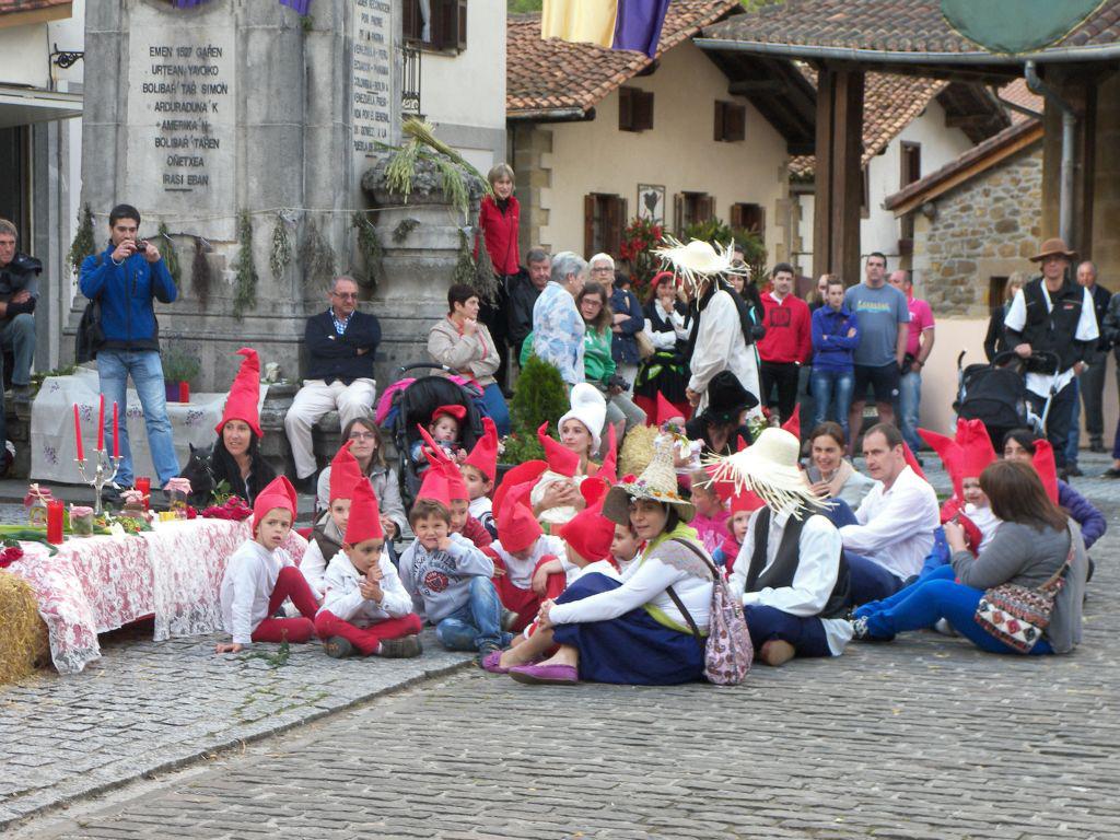 basajauanak eta basandereak agertu ziren plazara. Guztiek batera, aurreskua dantzatu zieten arbasoei.