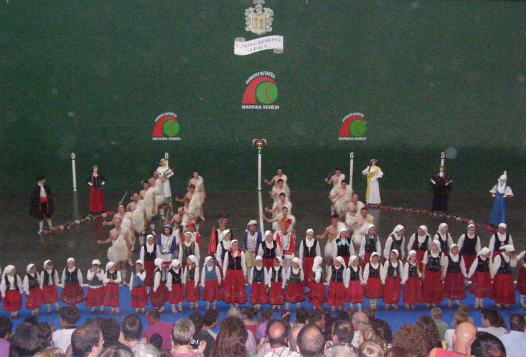 Kalejiran heldu ziren dantzariak frontoiraino. Han,