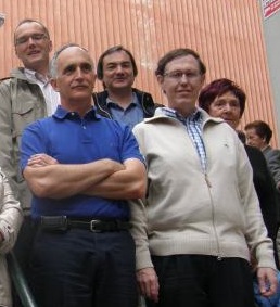 Aurrean, ezkerretik hasita, Ibon Aranbarri eta Rikardo Gatzagaetxebarria jeltzaleak