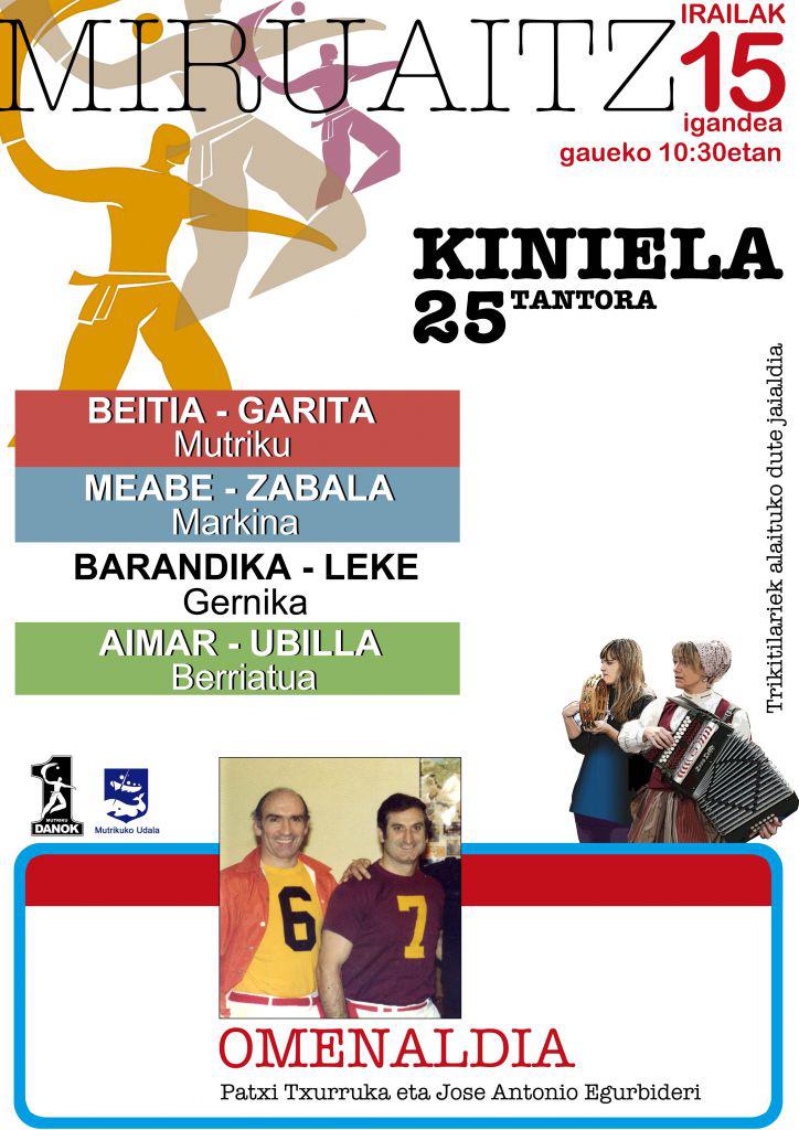 22:30etik aurrera. Lea-Artibai, Mutriku eta Busturialdeko lau bikotek kinielak jokatuko dituzte 25 tantora.