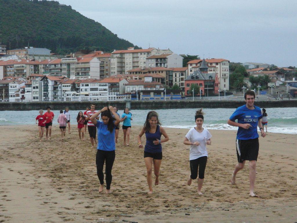 Karraspioko hondartzan egin dituzte entrenamendu saio batzuk, eta datozen eguetan ere bertan egingo dituzte lan saioak. «Hondartzan korrika egitea gogorra da, baina gorputza egokitzeko eta minik ez hartzeko lekurik eta onena da», azaldu dute entrenatzaileek.