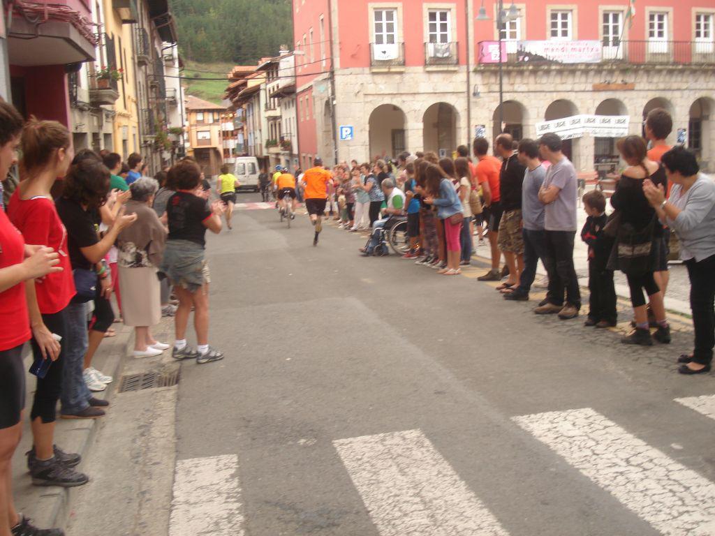 Aurkaririk ez zuten eduki irabazleek gizonezkoen mailan Jonek, Igorrek eta Sabinek indar erakustaldi handia egin zuten hasierako minutuetan. Segan minutu bat eta erdiko aldea aterata, hortxe erabaki zen sariketa. “Igorrek ondo mantendu du Jonek lortutako aldea bizikletan, eta hori ikusita, bagenekien Sabin korrikan ondo ilbiliko zela”, esan dute Aulestiko kirol elkarteko kideek. 36 minutu eta erdian amaitu zuten proba irabazleek, bigarrenari –Orrospen, Antso eta Matxi– 45 segundo aterata. Hirugarren sailkatuak Artako, Oier eta Egurrola izan ziren.