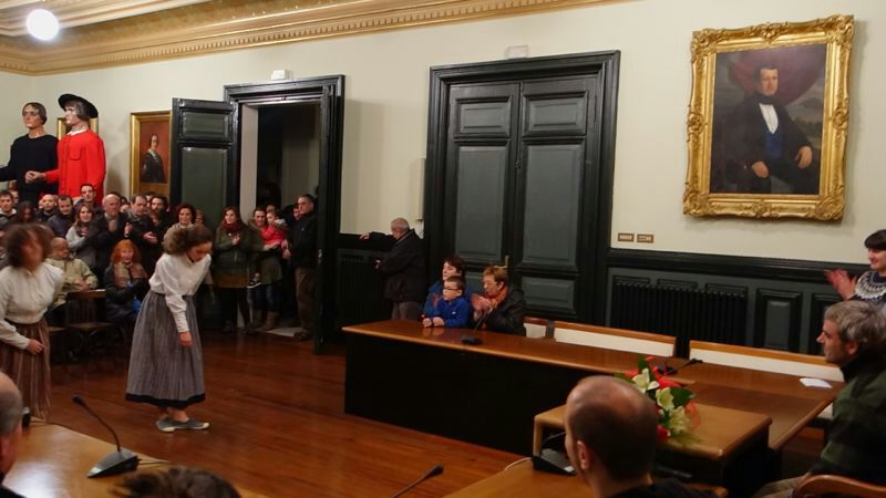udaletxean. Udaletxeko eskaileratan itxaron zioten herritarrek Fernandezi eta danak batera sartu ziren udaletxeko areto nagusira. Ongi etorria eman eta aurreskua dantzatu zioten.