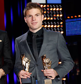 Bi izendapen izan eta biak irabazi. “Pozik” hartu zituen atzo gauean mutrikuarrak futbol liga profesionalak emandako sariak. Eta argi izan zuen zeini eskaini: “Nire taldekide ohiei eskaini nahi diet saria, familiari eta neska lagunari”, esan zuen, irribartsu.