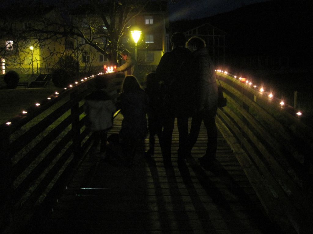 Iru -Bide aurreko egurrezko zubia argitu dute etxebarritarrek Kandelarioak ospatzeko. ETX taldeak antolatuta, kandela txikiekin apaindu zuten zubia ume eta nagusiek domeka arratsaldean.