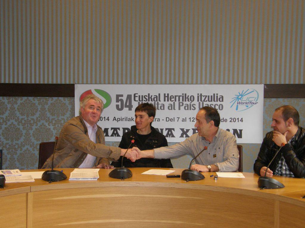 Euskal Herriko itzuliko antolatzaileek eta Markina-Xemeingo Udalak itzulia antolatzeko hitzarmena sinatu dute gaur goizean Markina-Xemeingo udaletxean egindako ekitaldian. Bertan egon dira Julian Eraso Euskal Herriko itzuliko antolatzailea, Juanjo Txurruka Markina-Xemeingo alkatea, Joseba Iraolagoitia Kirol zinegotzia eta Amets Txurruka Caja Rural-Seguros RGA taldeko txirrindularia.