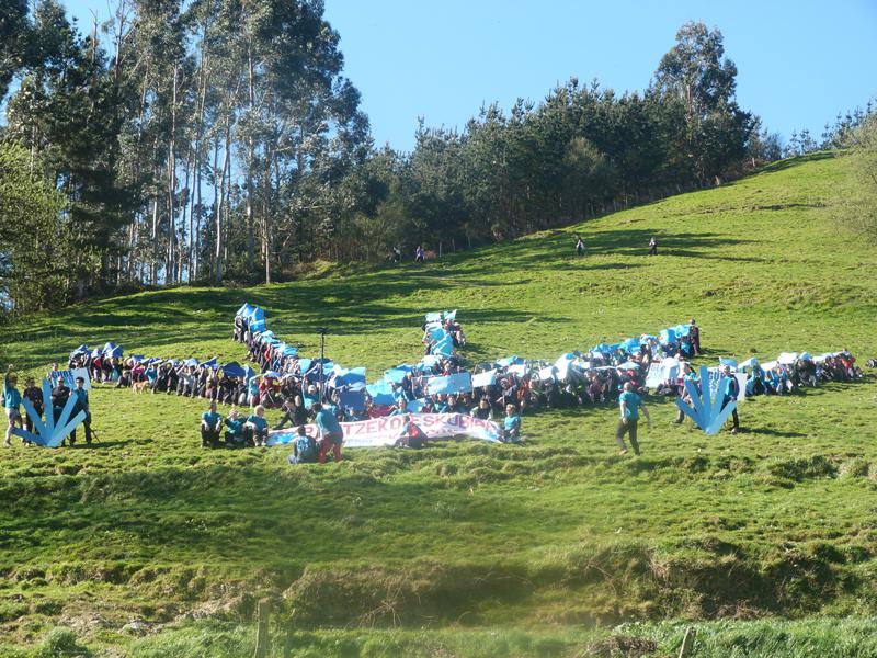 Gure Esku Dago dinamikak eskualdeko lehenengo ekimena egin zuen atzo goizean. Eguzkia lagun, erabakitze eskubidearen aldeko aldarrikapena Kalamendira eroan zuten. Haizeari aurre eginez osatu zuten esku erraldoia, herritar guztiei ekainaren 8an Durango eta Iruñea batuko dituen giza kateagaz bat egiteko deia eginaz. Dinamikako partaideek esan dutenez, aurrerantzean ere egingo dira eskualde mailako ekintzak, eta zehaztu ahala, jakitera emango dituzte.