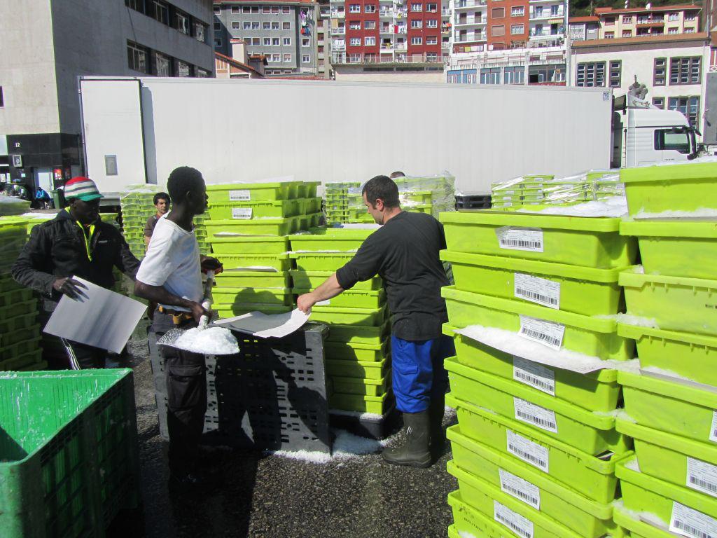 Ondarroan 23.000 kaxa antxoa lehorreratu zituzten atzo, 207.000 kilo: bataz beste 1,80 euro egin zituen Kalare Deuna Kofradiako bentan. Gaur 12.000 kaxa zeukaten lehorreratuta 11:00ak orduko, 108.000 kilo inguru. 55 eta 40 garaukoa izan zen hura ere, txikia: 1,60 euro bueltan saldu da.