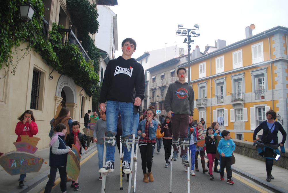 Eskolapetik eta Gazte gunerako bidea jai bihurtu zen joan den zapatuan. Hankapalo, trikitixa, bapore, parakaidas eta bengalen ke eta argiaz girotuta kalejira egin zuten 110 haur, gazte, guraso eta herritarrek