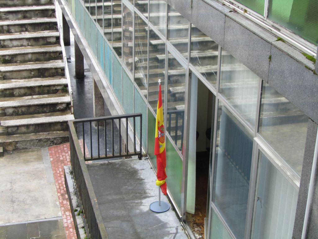 Atzo eguerdian ipini zuten, bandera espainiarra ipintzeko azken ebazpena jaso ostean. Aurretik, bandera txiki bat egon da ipinita, udaletxeko atarian.