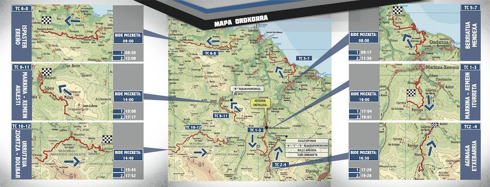 Ekitaldia bariku arratsaldeko 16:30ean hasiko da. Autoak Markina-Xemeindik irten eta Etxebarriko asistentzia gunera joango dira rallyari hasiera emateko. Bi tramoko bukle bakarra egin beharko dute parte hartzaileek. Bi aldiz egin beharko dute Markina-Xemein eta Iturreta eta Aginaga eta Etxebarria arteko tartea. Bien artean asistentziatik pasatuko dira autoak.