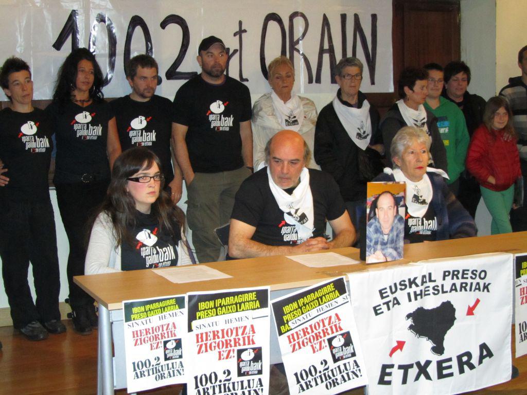 “Ibon berriro espetxeratzeak bere osasun egoera are eta okerragoa bilakatzeko arriskua ekarriko zuela pentsatzeak kezka handia eragin digu, eta 54 egun hauetan gure susmorik txarrenak bete baino ez dira egin”. Horixe azaldu zuten atzo arrantsaldean Ondarroako Kofradia Zaharrean Iparra Galdu Baik plataformako kideek, guztiz kezkatuta. “Ia bi hilabete horietan Ibonen osasunak jasan duen kaltea 2010-2011 bitartean kartzelan egon zenean urte betean jasan zuenaren parekoa da”. Senide eta lagunek esan dutenez, defentsak 400dik gora izatetik 200dik behera izatera pasatu zaizkio; asteroko zortzi telefono deien kontua eramateko zailtasunak izan ditu; bi egunetan telefono txartela aldenduda eduki du; tarteka errealitatearen nozioa galtzen du, gauza garrantzitsuak eta huskeriak ez ditu bereizten: burmuinean duen orbanak ikusmena mugatzeaz gain, disfuntzio kognitibo latzak eragiten dizkio, baita pentsamenduaren nahasmena eta jokabidearen alterazioa ere; HIESa dauka, C estadioan, hau da, sendaezina eta itzulezina da. “Bere osasunak izan duen beheranzko bilakaera azkar eta larriaz gain, Basauriko kartzelan zegoela bi jipoi ere jaso ditu, bata preso sozial batek emana eta bigarrena espetxeko funtzionarioek emana. Hori nahikoa ez eta, joan den astean, Basauriko kartzelatik Navalcarneroko espetxera urrundu dute, bere etxekoengandik eta osasun egoeraren jarraipena egiten dioten Basurtoko ospitaletik 400 kilometrora”.