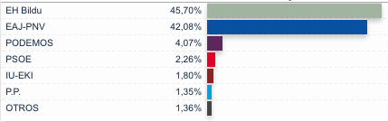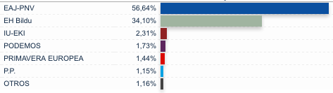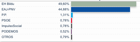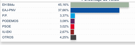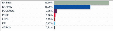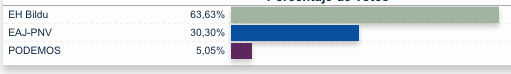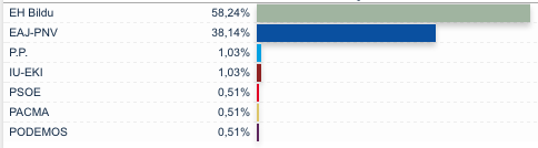 - GIZABURUAGA: 63 (EH Bildu), 30 (EAJ), 5 (Podemos) eta 1 (zuri)