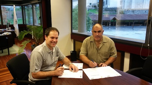 Imanol Mugartegi Berriatuko alkatea eta Txema Abarrategi Garabideko koordinatzailea, hitzarmena sinatzen.