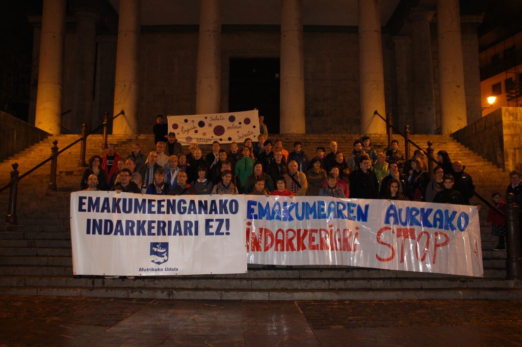Mutrikun 18:00etan egin dute elkarretaratzea, Goiko Plazan (elizako eskaileretan). Guztira, gutxi gorabehera, 100 herritar inguru bildu dira. Bi pankarta egon dira, Mutrikuko Udalarena eta Mutrikuko Emakumeak Abixan taldearena.