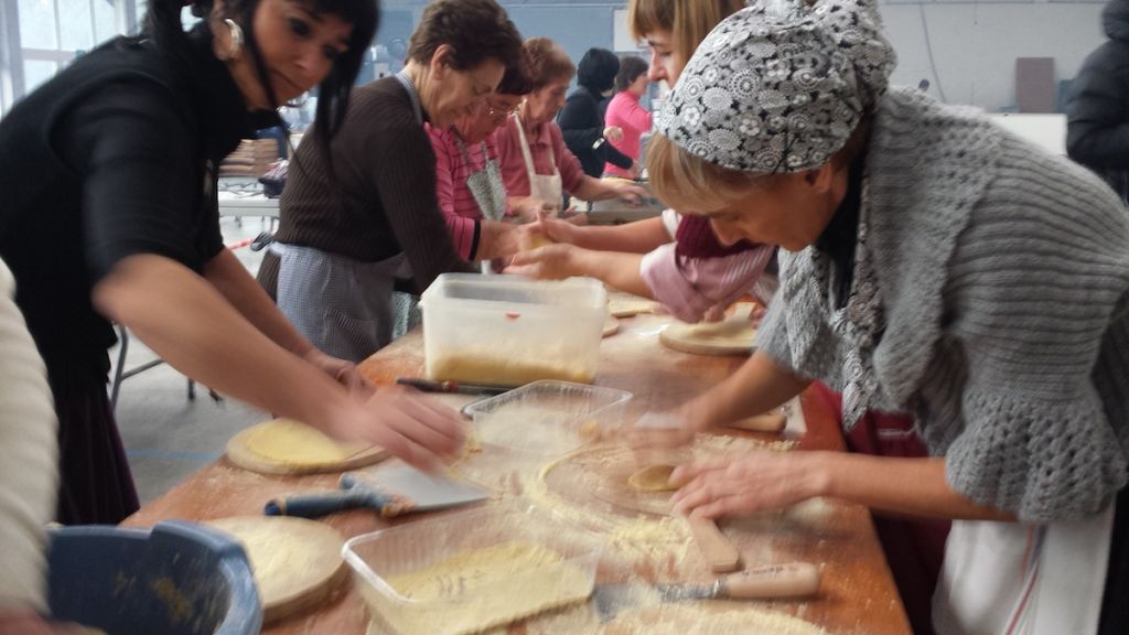 Herritarrak, taloak egiten, txahal janean.
