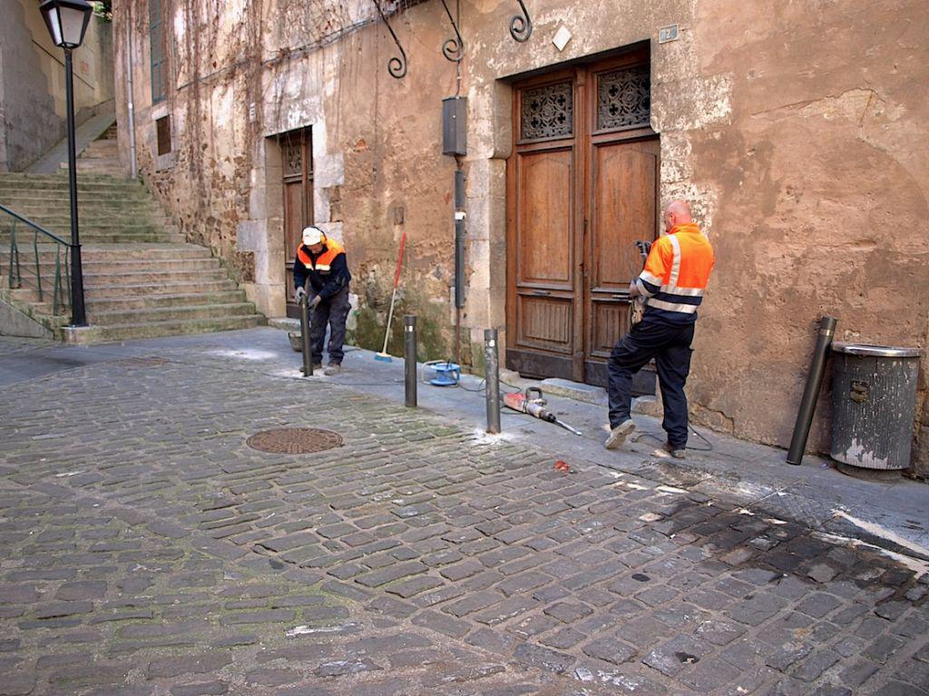 Udaleko brigadako langileak pibote berriak ipintzen