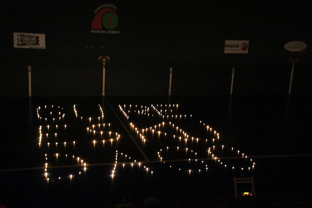 Gure Esku Dago dinamikak deituta, hainbat lagun batu ziren bariku iluntzean, frontoi nagusian, erabakitzeko eskubidearen aldarria zabaltzeko. Guztien artean mosaiko erraldoi argitsua osatu zuten kantxa erdian jarrita. Taldeka zein guztiak batera argiak piztuta, irudi dotorea osatu zuten ume eta nagusiek. Ondoan, Gure Esku Dago idatzi zuten kandelen argiekin.