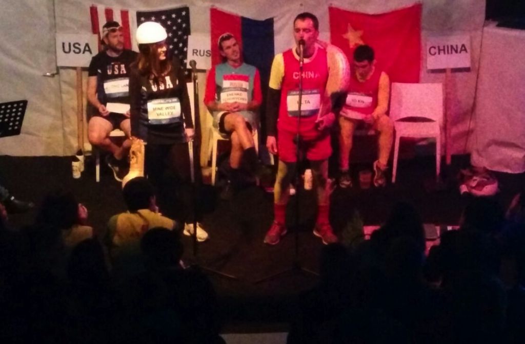 USA eta Txinako bertsolariak zestak eskuan dituztela. Argazkia: Josu Arrate