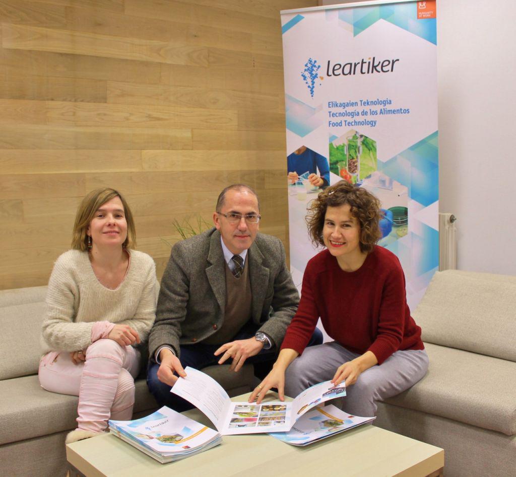 Naia Andonegi Leartiker Elikagaien Teknologiarako arduraduna, Gilles Garric aditua eta Malen Sarasua Leartikerreko ikerlaria.