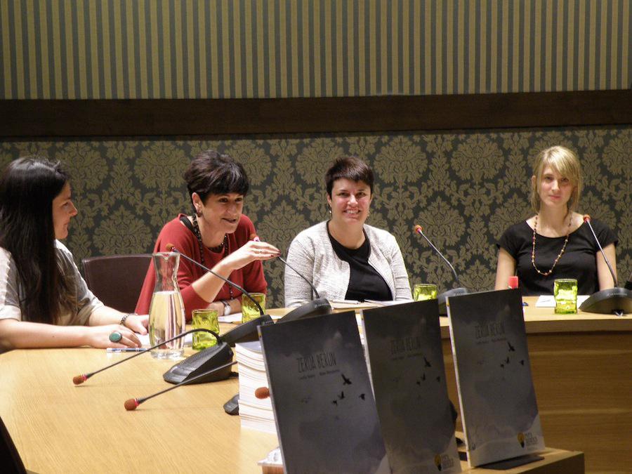 Zerua Berun, 2014ko album irabazlearen aurkezpen ekitaldia udaletxeko osoko bilkura arteoan. Mahaian: Josune Baskaran zinegotzia, Mari Eli Ituarte itzultzailea eta Peru Abarka lehiaketako epaimahaikidea, Castillo Suarez idazle nafarra eta Maite Mutuberria ilustratzailea.