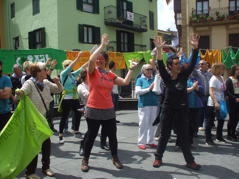 Oihalen bueltan elkartu dira asteburuan Lea-Artibai eta Mutrikuko bizilagunak. Apirilaren 25a Joste Eguna izendatu zuen Gure Esku Dagok, eta ekainaren 21ean herrialdeetako hiriburuetan osatuko diren hautestontziak egiteko erabiliko diren oihalak josten aritu ziren, jai giroan.