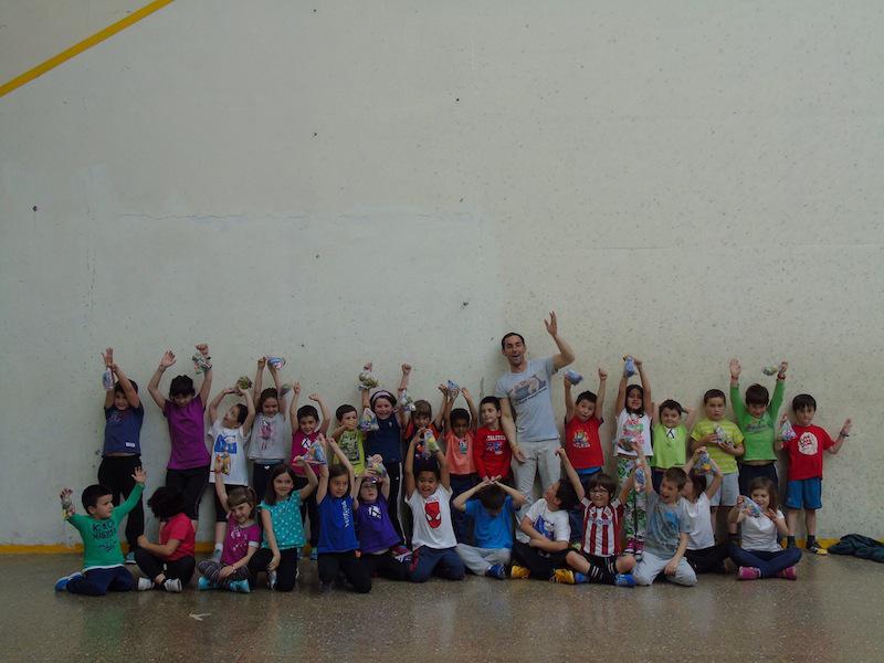 Seigarren multikirol topaketak egin dituzte LH 1 eta 2ko umeek, Akarregi pilota taldearen laguntzagaz. Argazkia: Lekeitioko Udala