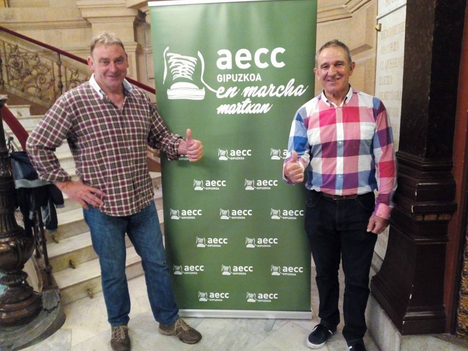 Joxe Mari Olasagasti eta Jose Luis Korta martxarako deialdia egiten. Argazkia: Aecc gipuzkoa