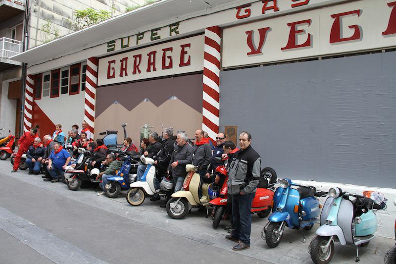 Lanbretta motorrak horma-irudiaren aurrean. Argazkilaria: Agustin Arrieta