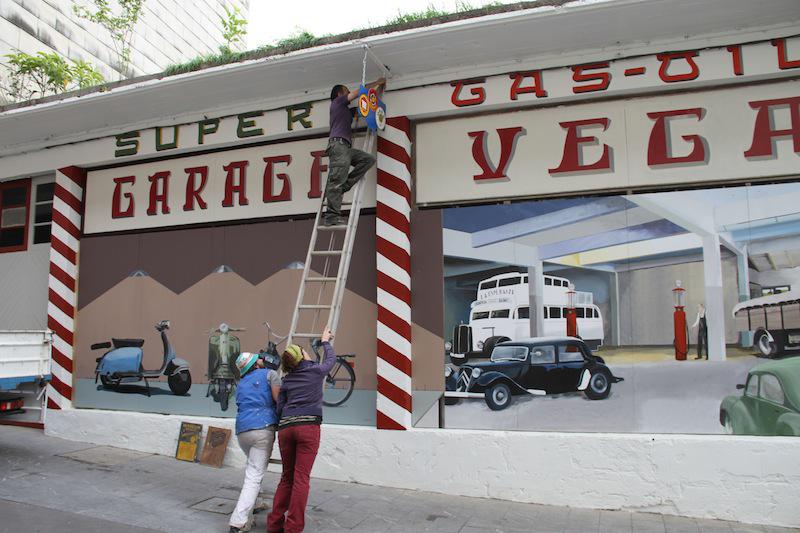Istorio guzti horiek eta gehiago zurrunbiloan dabiltza Markina-Xemeingo kaleetan Ane Arakistainek Vega Garajeko erakusleihoa margotu duenetik.