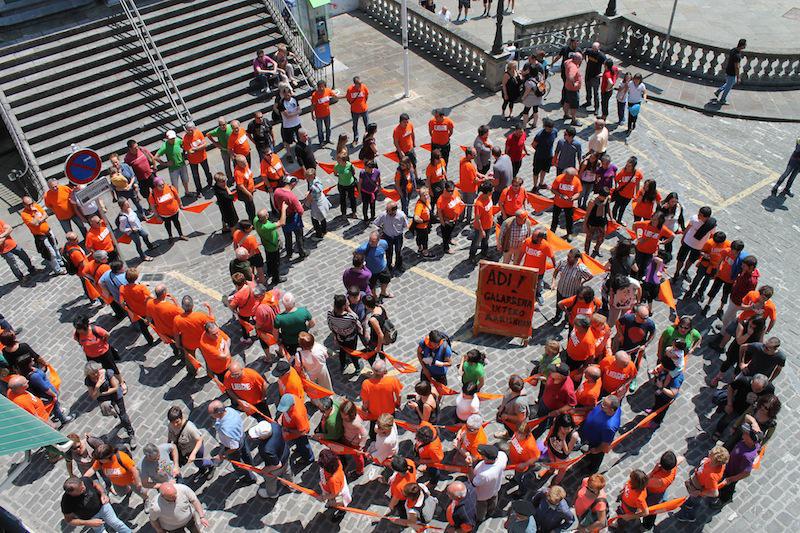 Galarrena ez ixtea eskatzeko domekan Lekeition egin zuten giza katea. Argazkia: Galarrena Elkartea