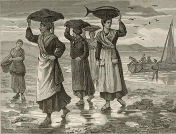 Emakume batzuk arrainez betetako otzarak buruan dituztela. Argazkia: Ondarroako Historia Zaleak