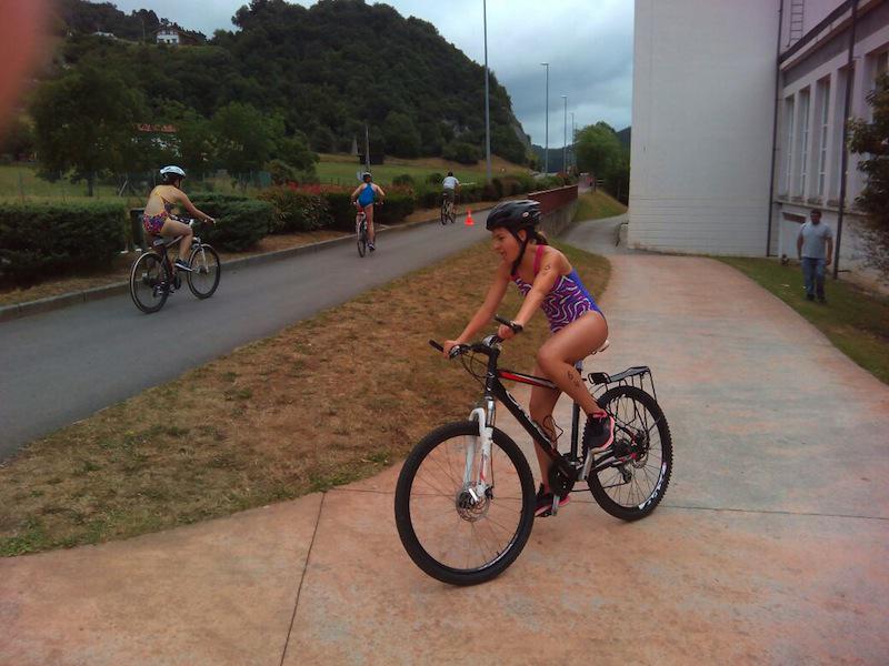 Igerian, korrika eta bizikletan ibili ziren 7tik 16 urtera arteko triatletak Markina-Xemeingo Atxondo kiroldegiaren inguruan domeka goizean. Eguraldia lagun, “gustura” ibili ziren kirolariak.