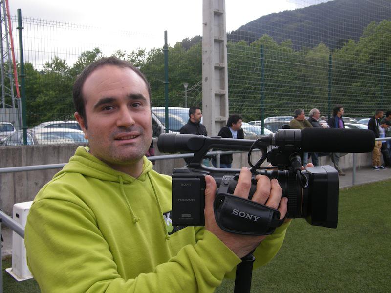 Josu Arrate kamara eskuan hartuta, ekitaldi bat grabatzen.