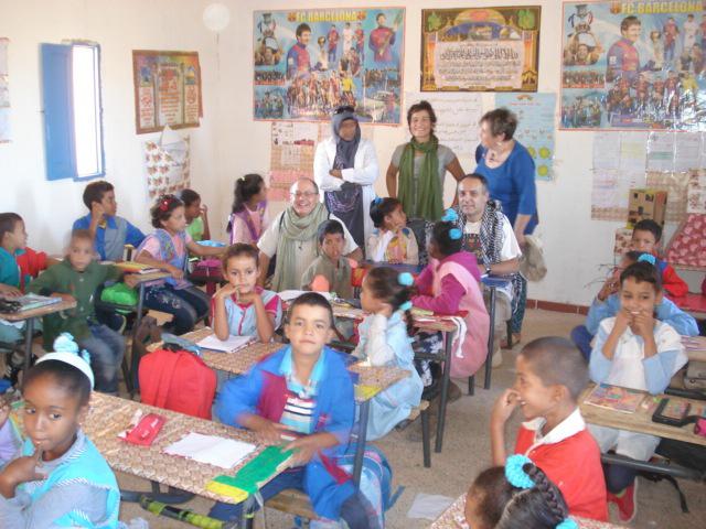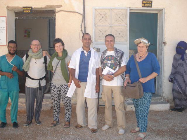 Saharar errefuxiatuen kanpalekuko osasun zentroko beharginekin.