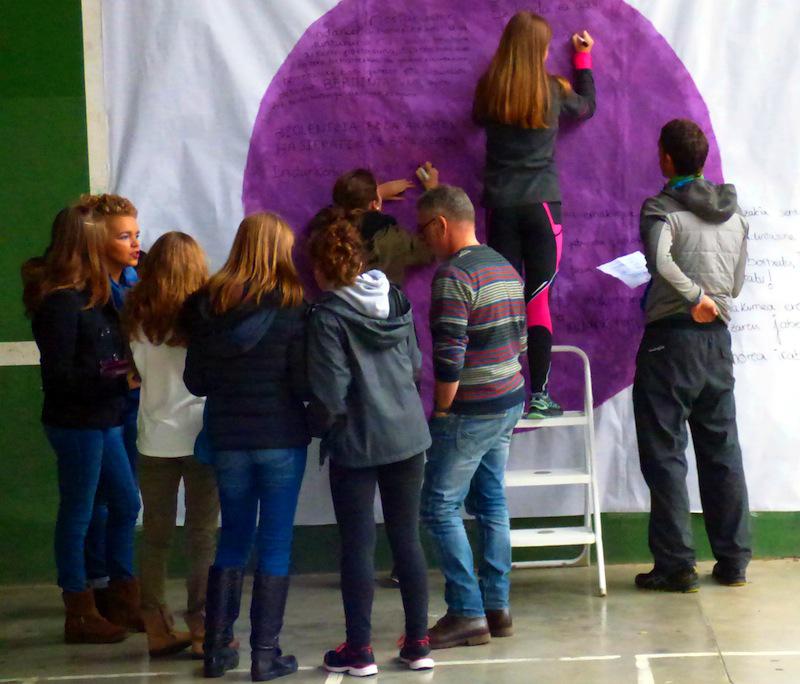 Bekobentako Markina BHIn ere ekintza ikusgarria antolatu dute, “Puntu Lila” izeneko jarduera burutuz. Bertoko ikasleek puntu lila erraldoian emakumeen aurkarko indarkeria salatzen duten mezuak idatzi dituzte. Bestalde, hezitzaile, guraso eta herritarrez bete zen atzo arratsaldean Markina-Xemeingo Uhagoneko batzargela. Galtzagorri elkartearen eskutik generoaren ikuspegia landu zuten haur eta gazte literaturan. Horrez gain, Parekidetasunaren Batzordeak eta Herri Bibliotekak antolatuta, hezkidetza lantzeko egokiak diren liburuak gomendatzen dituzten liburu puntuak banatu zituzten. GUTUNAK: