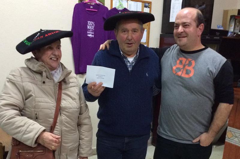 Barinagako Briska Txapelketako irabazleak Maria Angeles Arriaga eta Martin Txurruka antolakuntzako kide bategaz. Argazkia: Alberto Agirregomezkorta