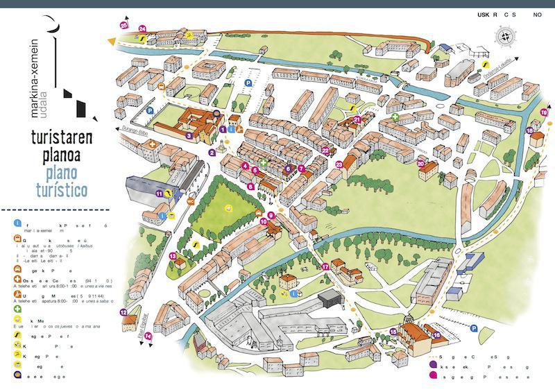 Turismoari begira gabezi batzuk identifikatu zituen Turismo Mahaiak eta zehaztutako gabezien artean turistak edo bisitariak herrian zehar mugitzeko informazioa falta zutela ikusi zuten. «Markina-Xemeinen turismo bulegorik ere ez dago eta bisitarien kopurua ere asko igo da azken urteetan», azaldu dute. Horrenbestez, gabezia horri erantzun on bat emateko asmoz, herriko plano bat eratu dute.