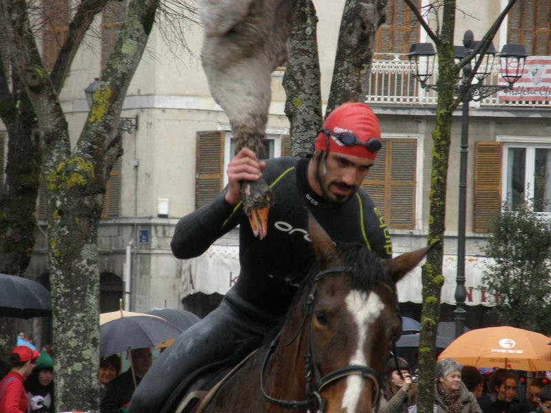 Gazte bat antzarrari lepotik kolpeta, Markina-Xemeingo antzar jokoan.