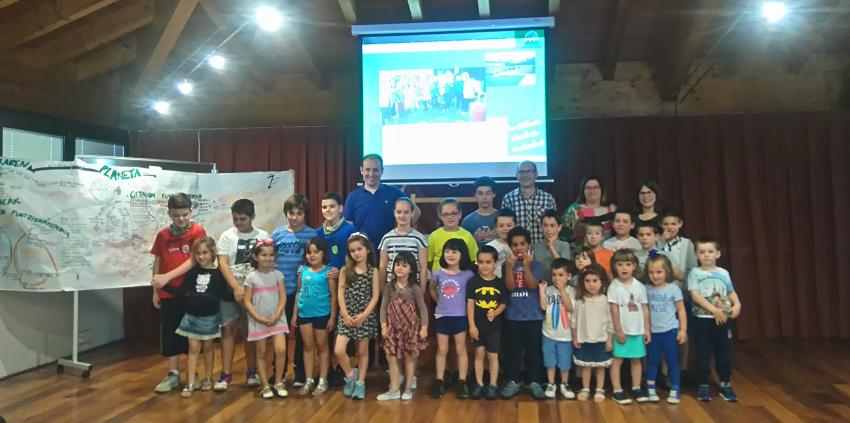 Horiekin batera, Arkaitz Goikoetxea alkateak eta Xiana Ibaibarriaga zinegotziak arretaz entzun dituzte ikasleen azalpenak, eta Joseba Martinez Eusko Jaurlaritzaren Ingurugela Ingurumen Hezkuntzarako Zerbitzuko eskualdeko koordinatzailea ere egon da aurkezpenean.