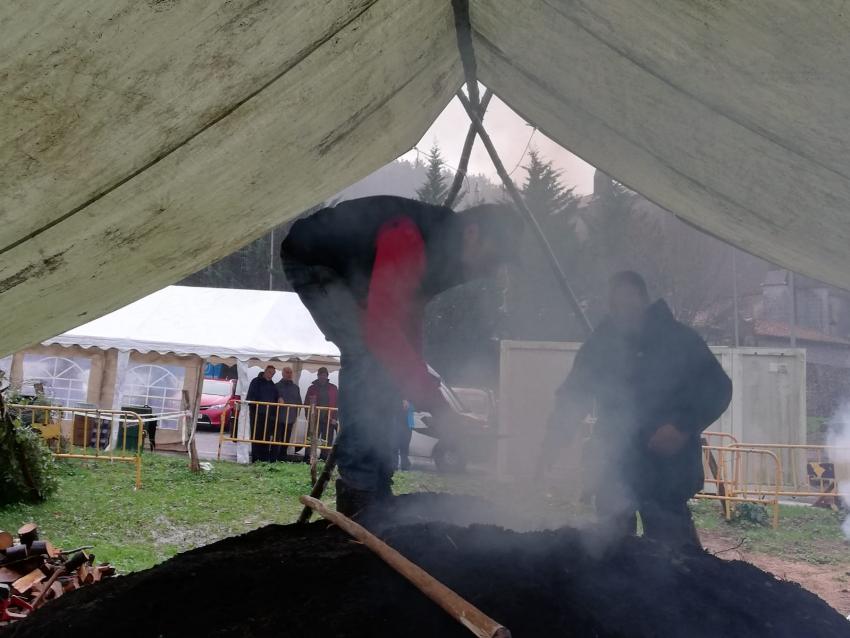 Atzo goizean [abenduak 14] piztu zutenetik, ez diote begirik kentzen. Egur ikatzezko txondorra asko kostata egin dute, sasoi bateko ikazkinek egin legez, eta datorren zapatuan [abenduak 22] itzali arte, boluntarioek jo ta su zainduko dute.