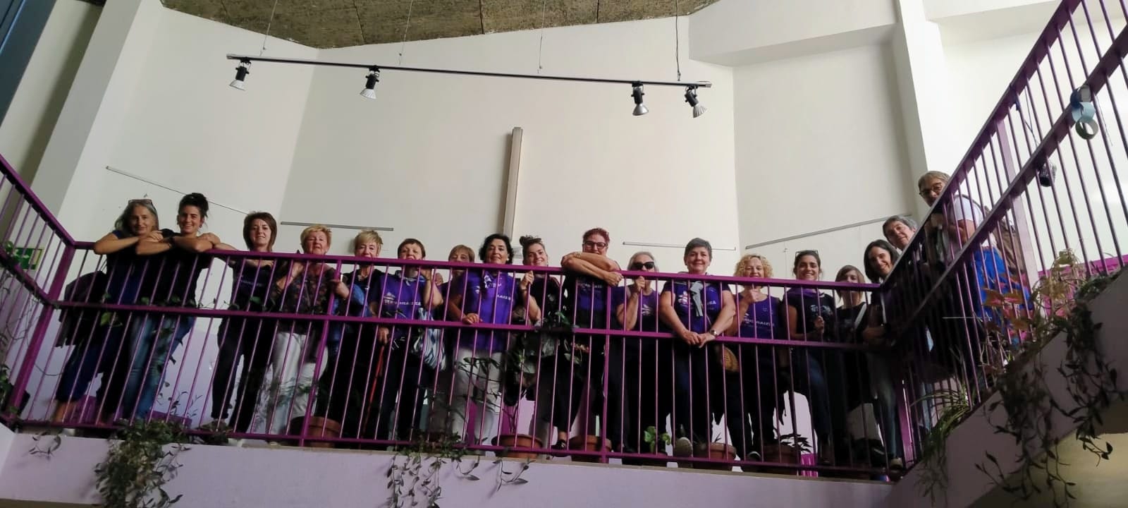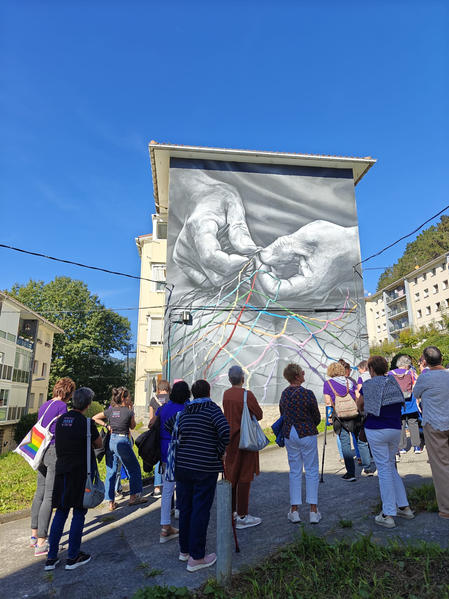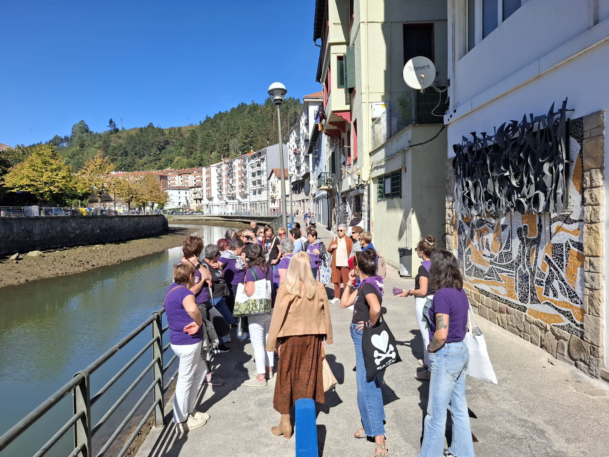 Kamiñazpiko muralaren aurrean. Boga Boga. Ondarroara bisitan egin zuen zapatuan [irailak 27] Dimako Andraizea emakume taldeak, eta Boga-Boga emakumeen elkarteak herriko txoko ezberdinak erakutsi zizkion.