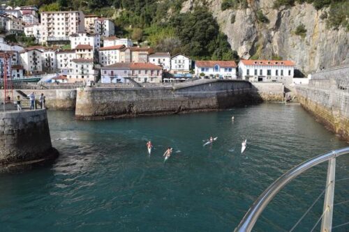 Argazkia: Dzanga Piragua Taldea. Urriaren 26an egin behar zuten Elantxobe eta Lekeitio itsasoz lotu ohi dituen Dzanga Itsas Kayak Txapelketaren XI. ekitaldia, baina azaroaren 9ra atzeratu behar izan zuten. Domekan, baina, goi-goitik egin zuten Euskadiko Itsas Kayak Koparen hirugarren hitzordua hartu zuen zeharkaldia. Aurretiaz 47 lagunek izena eman zuten, baina azkenean parte hartzaileen behin betiko zerrenda murritzagoa izan zen: 26 partaidek hartu zuten irteera Elantxobeko portuan.