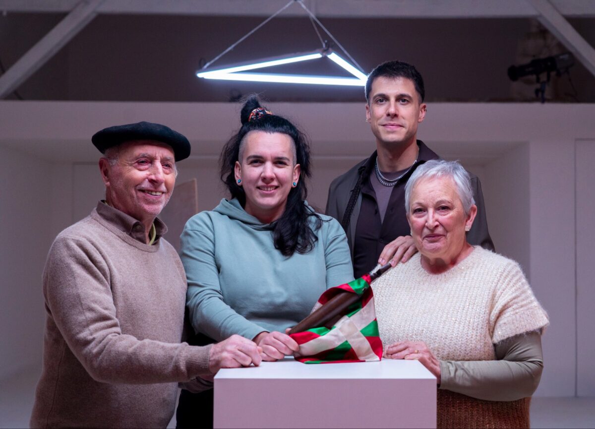 Erramun Martikorena, Ane Elordi, Pello Reparaz eta Maixux Zugarramurdi 24. Korrikaren 'Xiberutikan Mendebaldera' kantuaren aurkezpenean.AEK