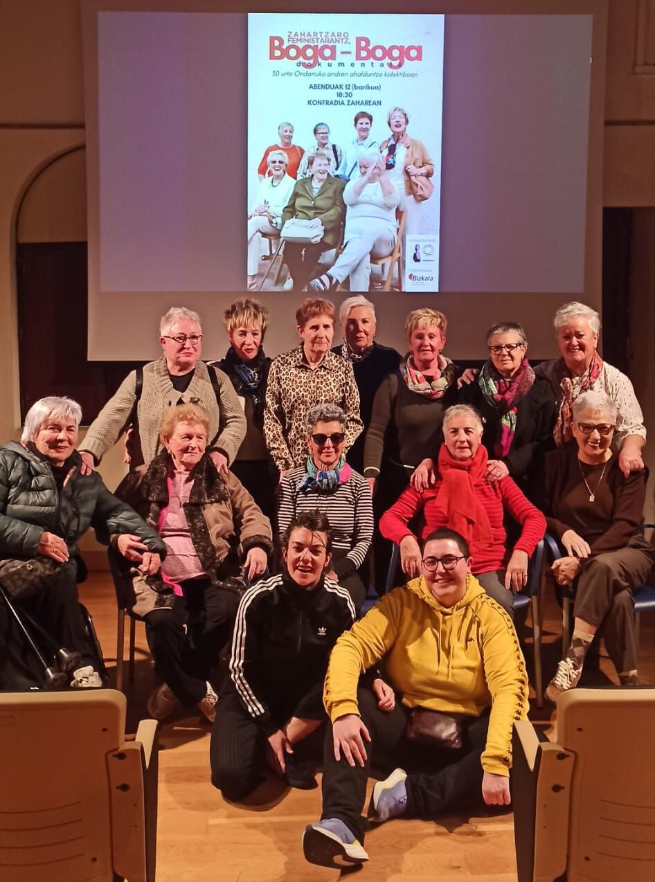 Boga-Bogako kideak, Udane Barinagarrementeria eta Mijo Lizarzaburu.Ondarroako Udala. Feministaldian Donostian estreinatu ondoren, barikuan [abenduak 12] Ondarroako Kofradia Zaharrean proiektatu zuten Zahartzaro feministarantz, Boga-Boga dokumentala, eta aretoa jendez bete zela azaldu dute antolatzaileek. Bertan egon ziren Boga-Boga talde feministako kideak, eta baita, Udane Barinagarrementeria eta Mijo Lizarzaburu dokumentalaren zuzendariak ere.