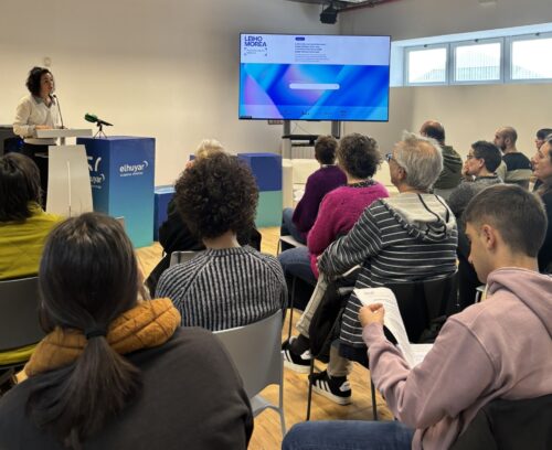 Usurbilgo Elhuyarren egoitzan izan dira Corte eta Bullen, eta “berdintasun errealerako eta gizarte justu bateerako bidean” Leiho Moreak duen garrantziaz aritu dira. Hori lortzeko baliabideak herritar guztien eskura utzi behar direla adierazi dute: “Berdintasun errealerako eta gizarte justu baterako bidean, ezinbestekoa da diskurtso feministan sakontzen jarraitzea eta diskurtso hori oinarri terminologiko sendo eta koherente batekin eraikitzeko baliabideak herritar guztien eskura jartzea”.