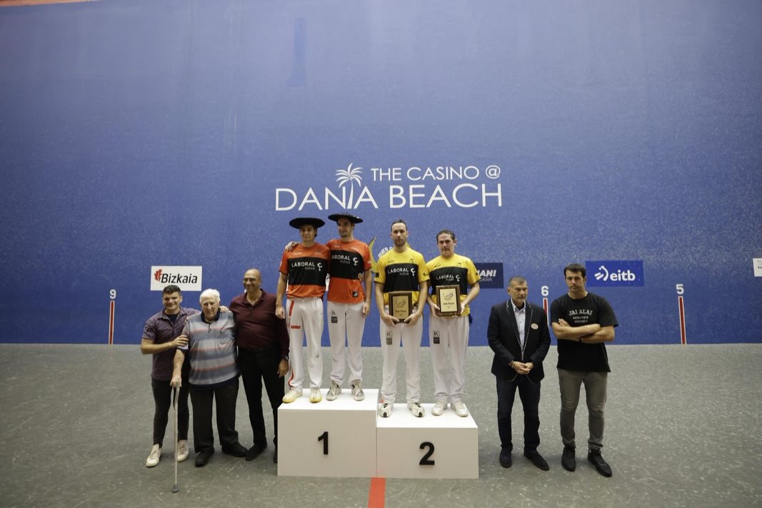 Argazkia: Eraman Jai Alai. Mikel Laboaren ahots joanak zioen legez, gaztea ez daiteke adin batez molda, gorputza sendo eta azkar du odola. Astebeteko lehia gogorraren ondoren, Johan eta Gorka Sorozabalek zesta-puntaren odol berria, biharko ez ezik, gaurko apustu segurua ere badela frogatu dute Daniako pilotalekuan. Miarriztar bikoteak 1 eta 2 irabazi die Biscayne Koparen final handia faborito nagusiei, Aritz Erkiaga ispastertarrari eta Imanol Lopez zumaiarrari. Aurtengoak ospakizunerako motibo ugari laga ditu: batetik, AEBko Jai Alairen mende bateko bideari omenaldia; bestetik, Lopezen agurra ikusle estatubatuarrei; horiez gain, antolatzaileek argitu legez, zesta-puntaren egungo «nazioartekotzea» martxan dela frogatzea.